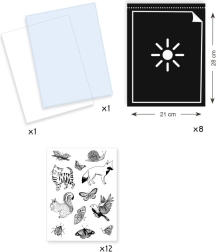 - 8 lap fényérzékeny papír, 12 minta acetátra nyomtatva, 1 plexilap