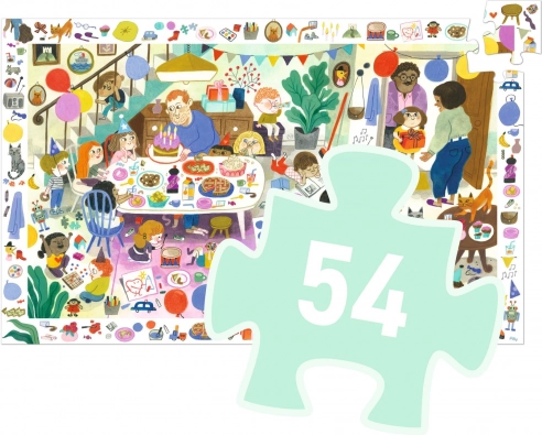 Szülinapi bulis kirakó a Djeco-tól, 53 darabbal, amely fejleszti a gyerekek motorikáját és kreativitását. Ideális 5 éves kortól.