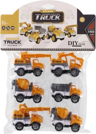 A készlet hat mini építőautót tartalmaz, amelyek ideálisak kis építők számára. Mindegyik autó visszahúzható meghajtással van felszerelve, amely lehetővé teszi az egyszerű előrehaladást - elég hátra húzni és elengedni.