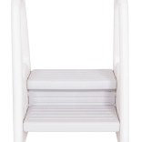 Könnyű és stabil, kétszintes gyerek fellépő oldalsó kapaszkodókkal, amelyek segítenek a gyerekeknek biztonságosan elérni a mosdót, a konyhapultot vagy a polcokat. Tartós műanyagból készült, csúszásgátló fokokkal rendelkezik, könnyen tisztítható, és a egyszerű összeszerelésnek köszönhetően pillanatok alatt használatra kész. Ideális a önállóság támogatásához 3 éves kortól.