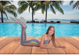 A sellőtövisünk és a Hawai bikini kombinációja ideális azoknak a kis úszóknak, akik igazi sellőként szeretnének játszani. Ez a szett nagyszerű szórakozást nyújt a medencénél vagy a tengernél, és sok örömet okoz az úszás során.
