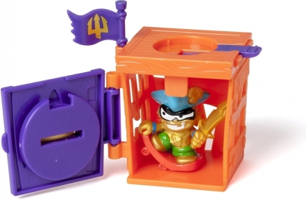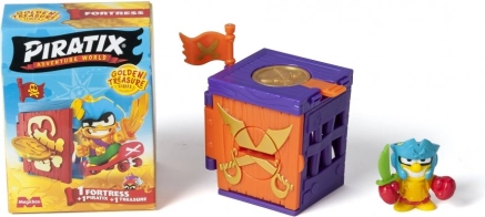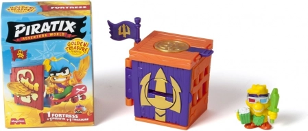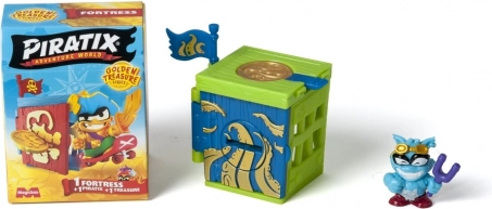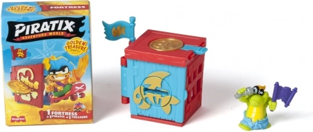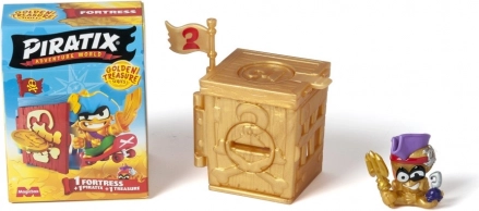 Fedezd fel a kalózkincsek világát Kalózfigurával, Arany Kincs Erődítménnyel. Ez a játék lehetőséget kínál gyermekeidnek felfedezni és gyűjteni a kincseket. Minden erődítmény titkokat és meglepetéseket rejt. Az exkluzív érmével a gyerekek megfejthetik a rejtvényeket és kinyithatják a titkos erőd ajtaját. A hab a tortán az izgalmas katapult lehetőség, amellyel riválisokat lőhetsz a levegőbe!