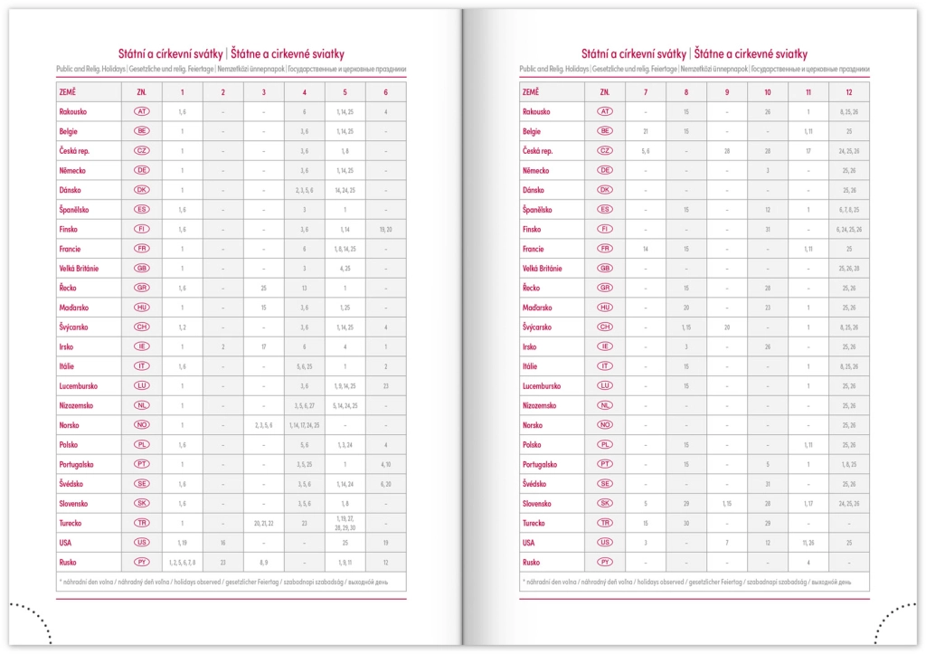- Ünnepnapok listája Cseh- és Szlovák Köztársaság számára, valamint nemzetközi ünnepnapok