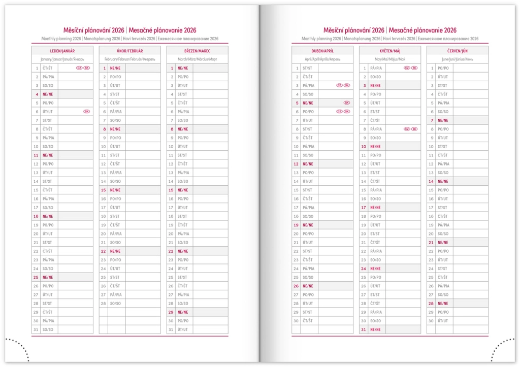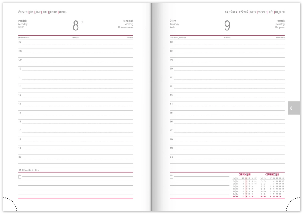 Aprint Top 2026 Napi napló stílusos és praktikus társ minden napra türkiz színben. Cseh-szlovák naptárral és kiegészítő nyelvekkel, mint angol, német, magyar és orosz.
