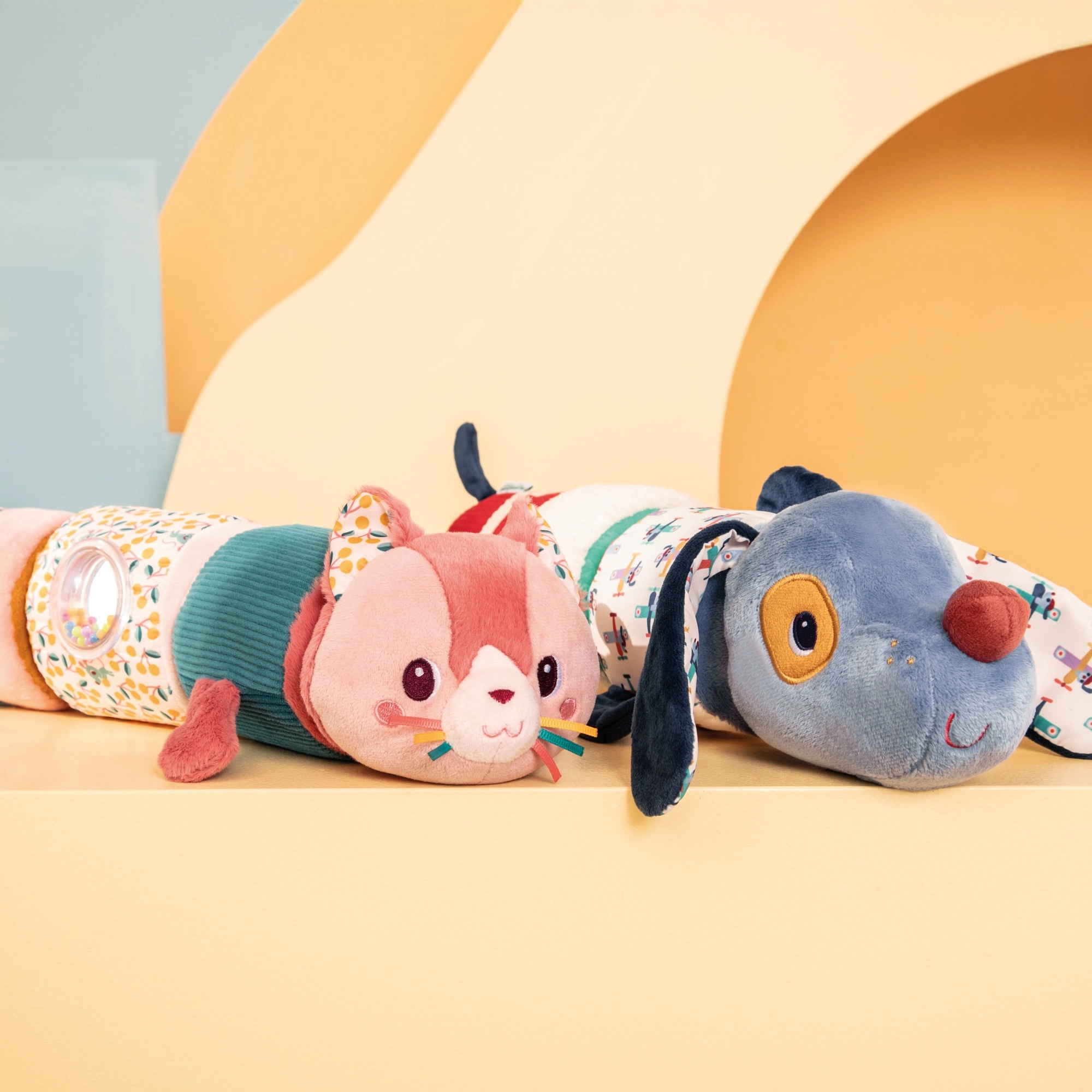 Szórakoztató szövet játék 6 hónapos kortól gyermekeknek. Tartalmaz hengereket aranyos kutyával, Jules-szal, és különböző hangokat és textúrákat kínál a változatos anyagoknak köszönhetően.
