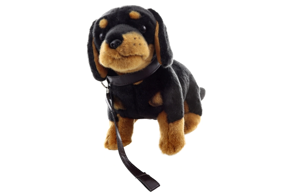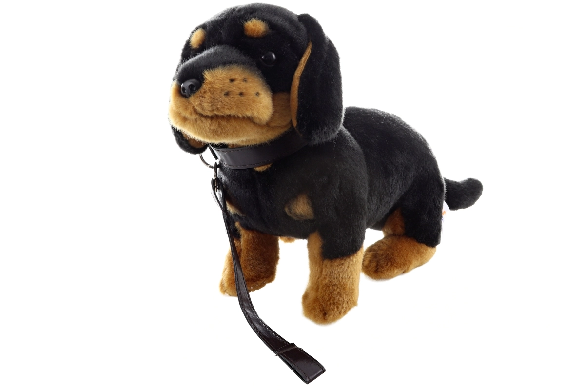 Plüss tacskó pórázzal, ideális a legkisebb gyerekek számára, örömöt és biztonságot nyújt. Környezetbarát anyagokból készült, tökéletes saját használatra vagy ajándéknak.