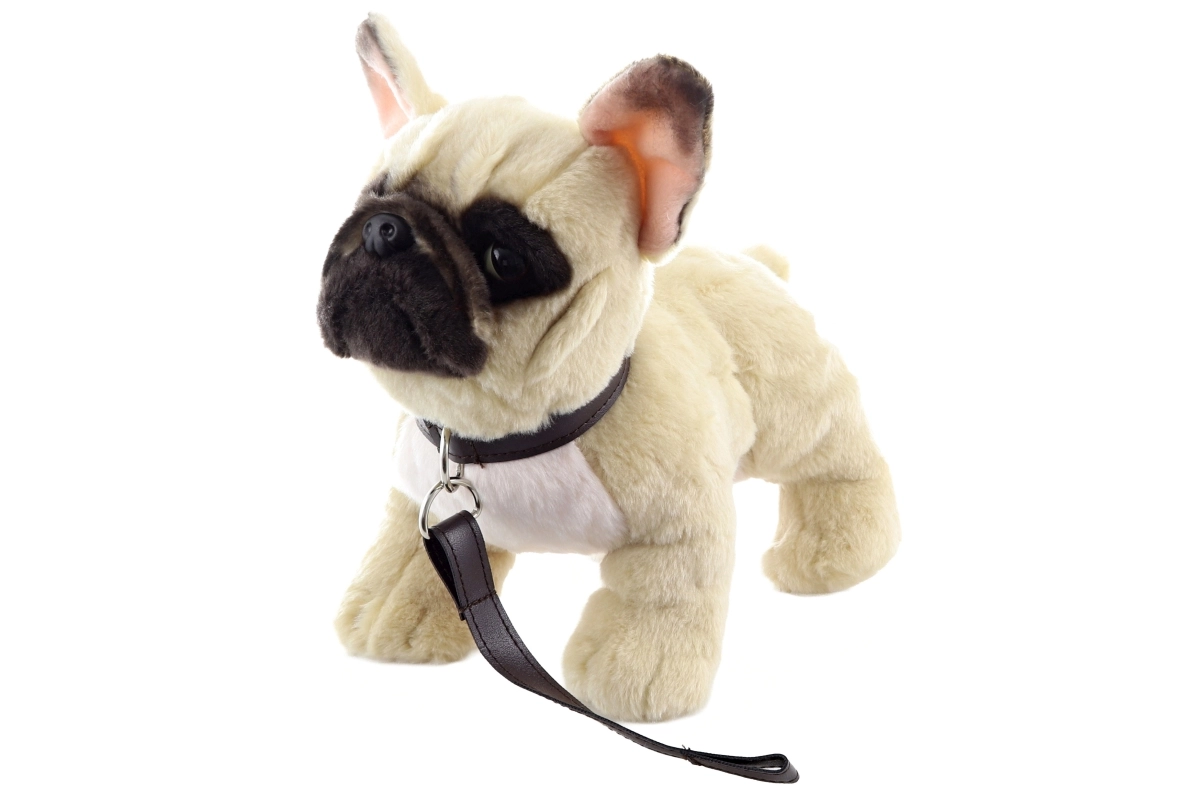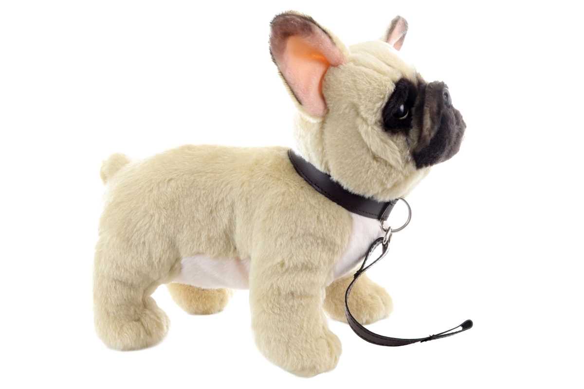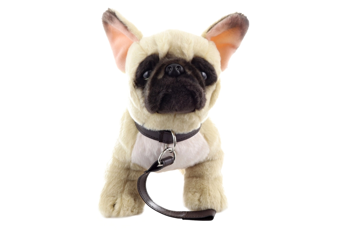 Környezetbarát plüss francia bulldog valósághű megjelenéssel, ami ideális társ a gyerekeknek minden korosztályban. Ez az aranyos plüssfigura praktikus pórázzal érkezik, ami támogatja a játékot és az interakciót.