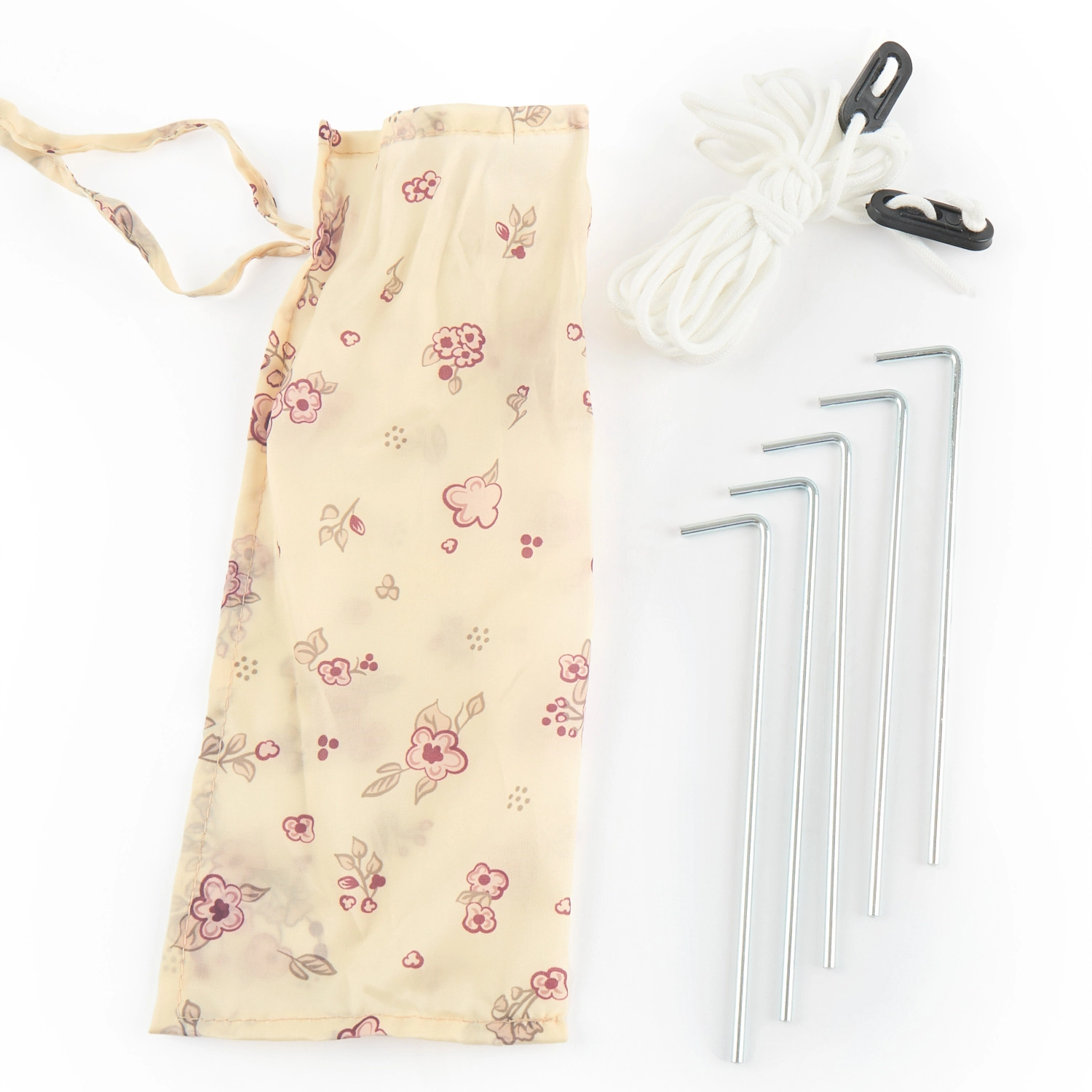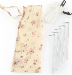 A csomag tartalma: strand sátor, két tároló táska, négy sátorcsap és horgonykötél. A sátor méretei 130 x 115 x 130 cm, anyaga 100% poliészter.