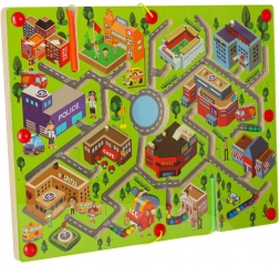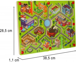 Ez a fa mágneses Labirintus játék arra lett tervezve, hogy nagyszerű játékélményt nyújtson utazás közben vagy otthon. A Nagyváros motívumának köszönhetően egyszerű irányítást és szórakozást kínál két személy számára.