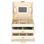 Beépített tükre megkönnyíti a reggeli ékszerválasztást, a kulccsal zárható mechanika pedig biztonságban tartja őket, amikor nem vagy a közelben.