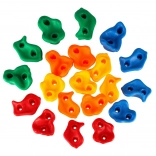 A műanyag mászófogások tervezésekor a biztonság és a tartósság volt a fő szempont. Ellenállnak az időjárási viszontagságoknak, így ideálisak kültéri használatra is. Változatos mászóútvonalakat hozhat létre, mivel többféle felületen is rögzíthetőek.