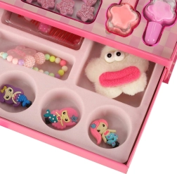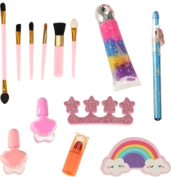 Minden kozmetikai termék nem mérgező, így lehetőséget ad a kis művészeknek egyedi stílusok megalkotására. A készlet tartalmaz mindent, ami a sminkeléshez és körömápoláshoz szükséges, beleértve a színes árnyalatokat, rúzsokat és körömlakkokat. Minden termék biztonságosan és könnyen lemosható vízzel.