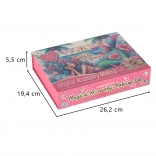 Ez a varázslatos színes bőrönd biztonságos teret biztosít a kreatív játékhoz és készségek fejlesztéséhez. Úgy lett tervezve, hogy fejlessze a kreativitást és az esztétikai érzéket a gyerekekben. Tartalmaz könnyű, könnyen lemosható és hipoallergén kozmetikai termékeket.