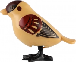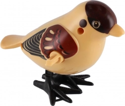 Aranyos műanyag kulccsal ellátott madárka, amely felhúzás után ugrál az asztalon vagy a padlón, és örömet okoz azoknak a gyerekeknek, akik szeretik az állatokat és a mozgást.