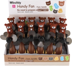 Aranyos kézi ventilátor maci mintával, mely minden gyermeket megörvendeztet. Csak meg kell forgatni a kart, és a ventilátor lapátjai gyorsan pörögni kezdenek. Ideális kis ajándékként vagy a kinti játékok színesítésére.