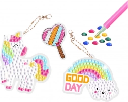 Az előlapok és a gyémántok felragasztásának helyei jelölve vannak - nincs szükség különleges képességekre az egyedi ragasztók és kulcstartók készítéséhez. Ez egy pihentető tevékenység, amely fejleszti a koncentrációt, türelmet és kézügyességet. Ideális önálló alkotásokra vagy családi szórakozásra is.