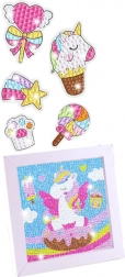 A készlet mindent tartalmaz a projekt befejezéséhez, beleértve a dekoratív keretet az elbűvölő egyszarvús képpel. A játék ideális ajándék kis művészek számára.
