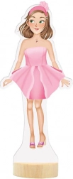 - Baba, 30 mágneses darab (ruhák, cipők, kiegészítők), fa állvány