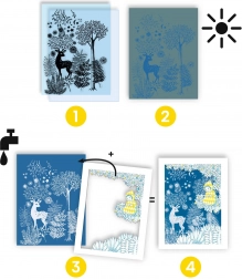 Ezzel a lenyűgöző készlettel egyedi minták alkotójává válhatsz, amelyek a fény hatására jelennek meg a papíron. Csak tedd ki a papírt a napfénynek, és figyeld meg, ahogy az árnyékos minták kirajzolódnak a sötét háttéren.
