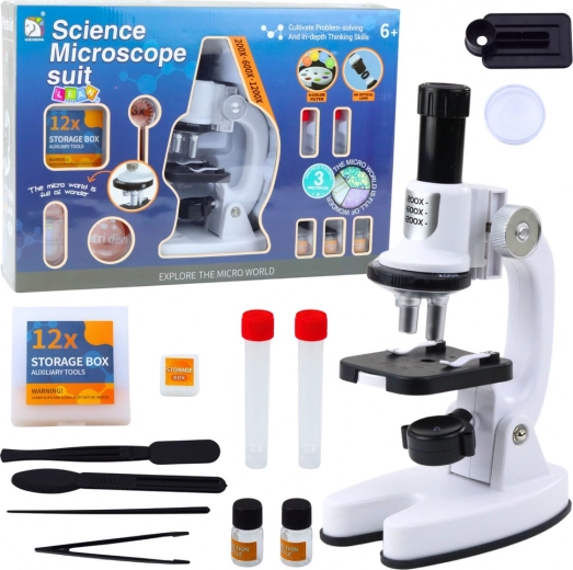 A készlet része számos nélkülözhetetlen eszköz – pipetta, csipesz, minták, fiolák, konténerek és tárgylemezek, amelyek lehetővé teszik különböző érdekes kísérletek és megfigyelések elvégzését. Minden egy erős tokban van csomagolva, ami ideális ajándékká teszi a mikroszkópot.
