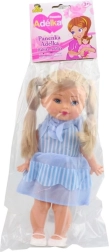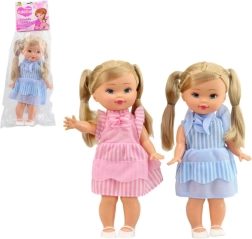Aranyos baba copfokkal és nadrágtartóval, ideális minden kislánynak. Csíkos ruhája díszítéssel biztosan elbűvöli minden gyermek szívét.
