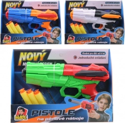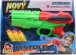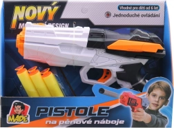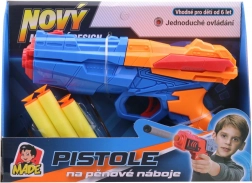Ez a szórakoztató pisztoly ideális kis kalandvágyóknak. Kiváló minőségű műanyagból készült, amely garantálja a tartósságot és biztonságot játék közben. Nincs szükség elemekre – azonnali használatra kész. A csomag tartalmaz 3 különböző színt, így a gyermek kiválaszthatja kedvencét. Egyszerűsége ellenére a pisztoly mérete kényelmes fogást biztosít: 15 cm magas, 21 cm széles és 4,5 cm mély.