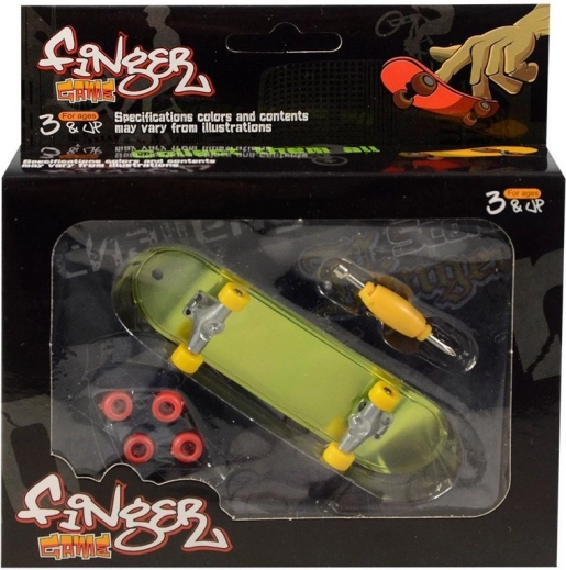 A 9 cm hosszú ujj deszka ideális játék kisfiúk számára. Kombinációja műanyag és fém, garantálja az állóképességet és hosszú élettartamot. A robusztus kialakításnak köszönhetően ez az ujj deszka kibír minden trükköt és varázslatot, amelyet gyermeke meg tud valósítani.