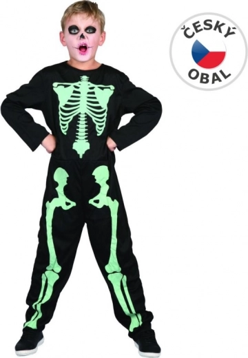 Ez a farsangi jelmez fiúknak sötétben világító csontvázat ábrázol, ideális választás bármilyen gyerekbulira. A jelmez tartalmaz egy kezeslábast elemekkel, amelyek sötétben világítanak, fokozva az élményt és a szórakozást.