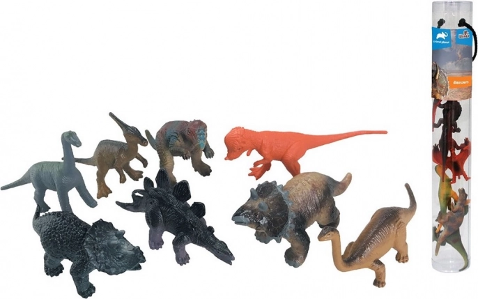 Állatkák dinoszauruszok tubusban edukatív és szórakoztató játékok 3 éves kortól. Ez a gyűjtemény 8 valósághű dinoszauruszt tartalmaz, melyek mérete 6 és 11 cm között van.