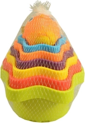 Kiváló játék kis építők számára, amely megtanítja az alapszíneket és fejleszti a finommotoros készségeket. A rakásolható poharakból gyermeke magas színes tornyot építhet. Vízben is használható.
