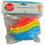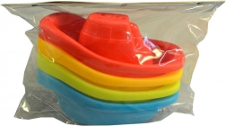 Olyan eredeti vízi játékokat keres, amelyek minden gyereket megörvendeztetnek? Ezek a hajócskák a megfelelő választás! 6 hónapos kortól alkalmasak, mindegyik hossza 11 cm, ami ideális a kicsi kezek számára. Kiváló minőségű műanyagból készültek, nemcsak hogy biztonságosak, de vízállóak is. Tökéletesek fürdéshez, kádhoz vagy medencéhez.