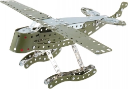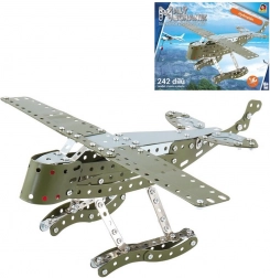 Építőkészlet Kis Mester - Repülőgép, amely 242 darabot tartalmaz, lehetőséget ad a gyerekeknek a kreativitás és a kézügyesség fejlesztésére. Ez a játék kombinálja a fém és műanyag elemeket, amelyeket csavarokkal és anyákkal lehet összekapcsolni.