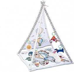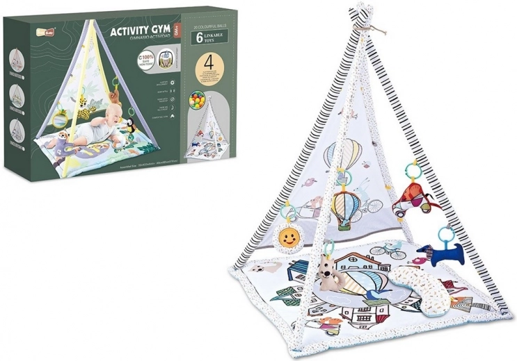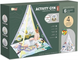 A játszószőnyeg újszülött kortól ajánlott, és támogatja a motorikus készségek fejlődését.