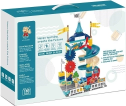 Ez a golyópályás kockakészlet 110 darabot tartalmaz, amelyeket a gyerekek saját fantáziájuk szerint összekapcsolhatnak és kombinálhatnak. A játék minőségi műanyagból készült, amely biztonságos és tartós. A kockák könnyen össze- és szétszerelhetők, ami megkönnyíti a tárolást és a rendrakást a mellékelt dobozban.