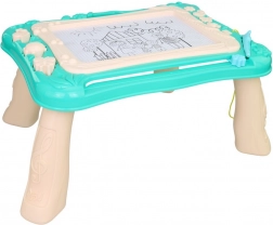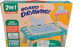 Varázstábla 2 az 1-ben ideális játék kis művészeknek és kezdő íróknak. Kiváló minőségű műanyagból készült, biztonságos játékot kínál éles szélek nélkül, és kétféle módon használható: önálló táblaként vagy lábakkal ellátott asztalként.