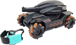 Továbbá, köszönhetően a második mozgásvezérlőnek, amit a kezére rögzíthet, és a tankkal párosítva, a tankot a kéz mozdulataival is irányíthatja. A vezérlő háromféle oldalmozgást kínál, ami a tankot tökéletesen irányíthatóvá teszi még a legnehezebb helyzetekben is. Induljon akcióba ezzel a tankkal, amely mérete 28 x 16 x 16 cm, és tartós műanyagból készült, így kültéri játékra is alkalmas.