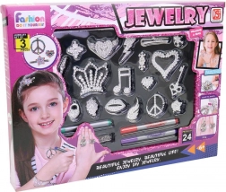 Ékszerfestő készlet egy ideális kreatív játék 6 évnél idősebb lányok számára. Lehetővé teszi gyermekeinek, hogy saját színes ékszerdarabokat készítsenek.