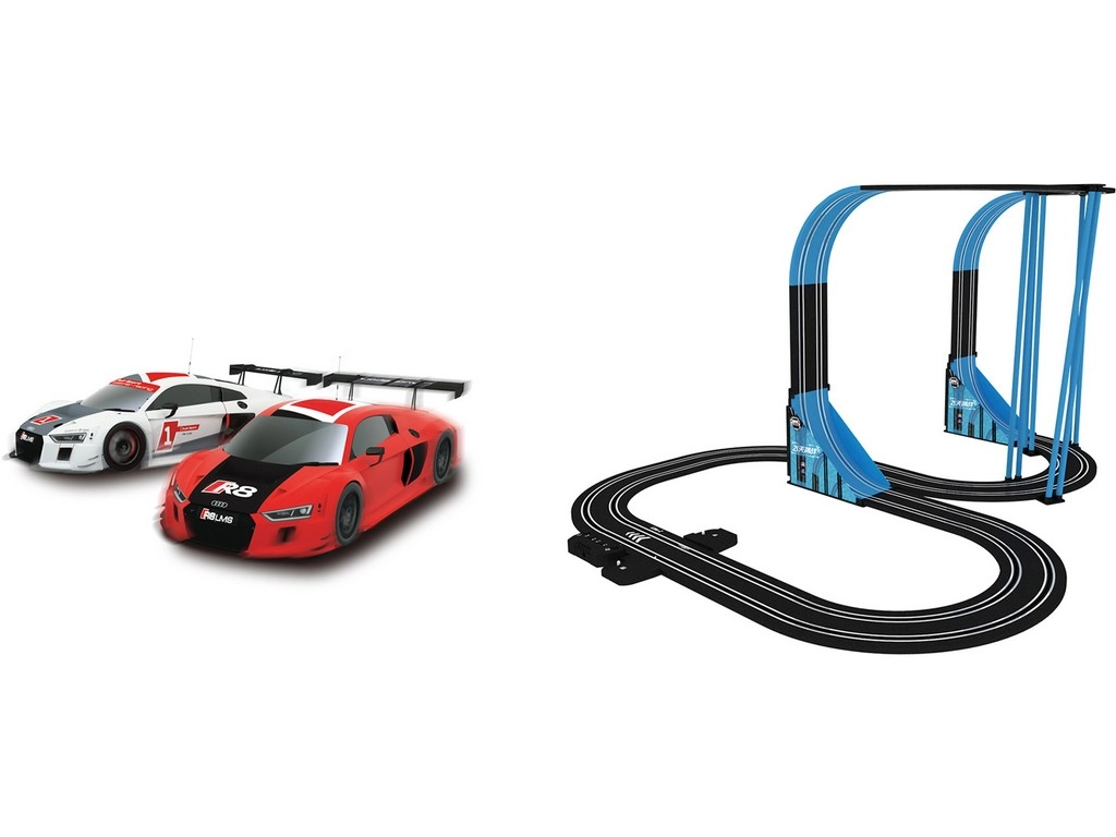 A loopingokkal rendelkező autópálya végtelen szórakozást biztosít 8 éves kortól. Ez a hosszú pálya, amely összesen 600 cm hosszú, izgalmas gyors utazásokat biztosít a hurkokon keresztül, ami garantáltan elbűvöl minden kis versenyzőt.