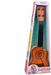 Ez a műanyag gitár ideális választás a kis zenerajongóknak. A méretei 40 x 14 x 4 cm, amely tökéletes az apró kezek számára, könnyű és könnyen kezelhető.