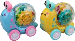 A játék színes csiga formájában, 3 éves kortól ajánlott, nagyszerű szórakozást nyújt a lendkerék mechanizmusnak és a fényhatásoknak köszönhetően. Kompakt méretei (10 x 6,5 x 9,5 cm) miatt minden hátizsákba belefér: