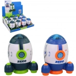 Űrrakéta nyitható ajtókkal, tökéletes ajándék kisfiúknak. Az egyszerűen kezelhető lendkerekes vezérlés segítségével a gyerekek új világokat fedezhetnek fel ezzel a rakétával.