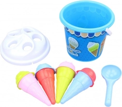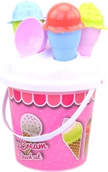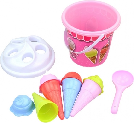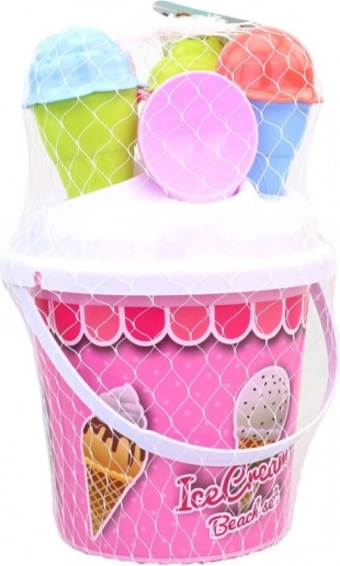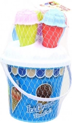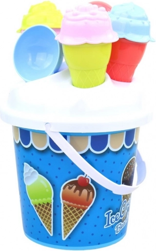 A szett része egy fogantyúval ellátott vödör, amely megkönnyíti a kezelést és a mozgatást a strandon vagy a homokozóban. A vödör jégkrém grafikával van díszítve.
