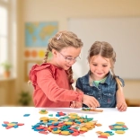 Wissner Geometriai Mintás Csempék ideális lehetőséget biztosítanak a gyermekek számára a geometria világának felfedezésére. A készlet 250 különböző színű darabból áll, ami hat geometriai formát tartalmaz, támogatva a kreativitást és a formák és színek tanulását.