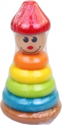A mosolygós figura alakú fa torony ideális játék a finommotorika és a térérzékelés fejlesztésére. A színes karikákkal a gyerekek megtanulják az alapvető színeket és a rendezést.