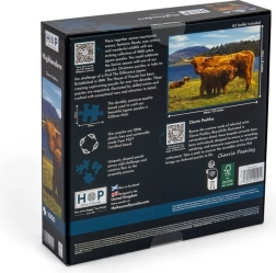 Skót Felföldi Marha Puzzle a House of Puzzles-től egyedi kihívást kínál a szabálytalan alakú daraboknak köszönhetően. Minden darab egyedi, és növeli a kirakás nehézségét.