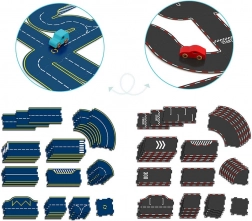 A Kétoldalas versenypálya Vilacity könnyű, de erős kartonból készült, amely lehetővé teszi az egyszerű összeszerelést és az újraépítést. Ez természetesen fejleszti a mozgáskoordinációt és a finommotorikát. A csomag két fa kisautót tartalmaz, amelyekkel a gyerekek vezethetnek, versenyezhetnek vagy saját közlekedési történeteket alkothatnak. A kisautók vezetése során a gyerek alapvető együttműködési elveket sajátít el, és gyakorolja a pontosságot és a koncentrációt.