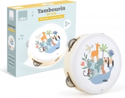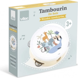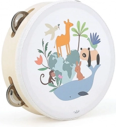 A Sarah Betz illusztrációival díszített fa tamburin ideális választás a kisgyerekek számára, akik el szeretnék kezdeni felfedezni a zene világát. Ez a játék, a zenei élményen túlmenően, megerősíti a kéz-szem koordináció, a ritmusérzék és a kreativitás természetes fejlődését.