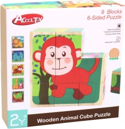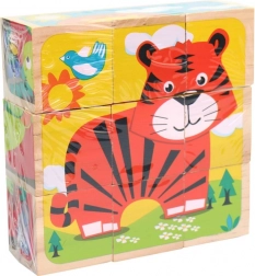 Fa kockák állatmintákkal ideális játék kisgyermekek számára. Ez a készlet különböző állatmintákat ábrázoló formák létrehozását teszi lehetővé, ami szórakozást nyújt és fejleszti a kreativitást.