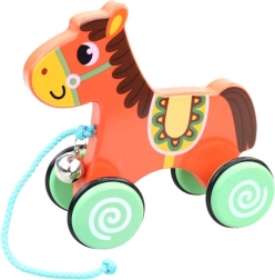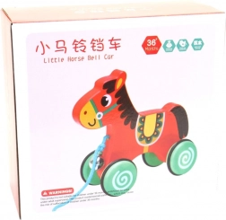 Fa húzható ló ideális választás 3 éves kortól gyerekek számára, akik szeretik a színes kombinációkat és a csengő lágy hangját.