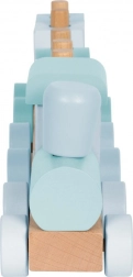A Small Foot fa vonat ideális a kis építők számára nagy fantáziával. A vonat tartalmaz egy mozdonyt és két vagont, amelyekre összesen 14 színben harmonizáló építőkocka illeszthető. A kockákat egyszerűen fel lehet illeszteni a fa rudakra, ami segíti a gyermekeket a finommotorika és a mozgáskoordináció fejlesztésében. A finom színek és a fa természetes árnyalatai kombinációjának köszönhetően ez a játék nemcsak szórakoztató, hanem esztétikailag is vonzó.